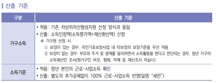 기준 중위소득 50% 이하이고 만 15세 이상~ 만 39세 이하이면서 월 10만 원 이상 소득이 있는 경우 매월 30만 원씩 지원,