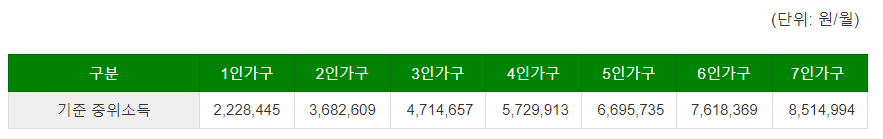 2024년 기준 중위소득 및 가입·유지기준